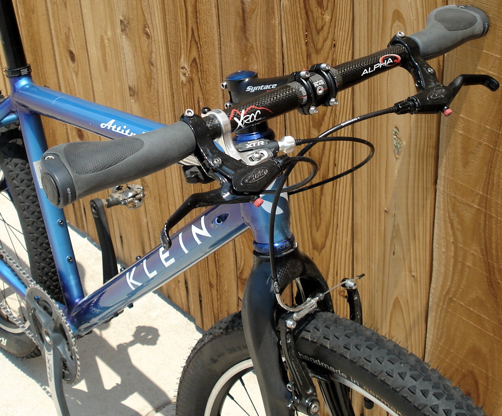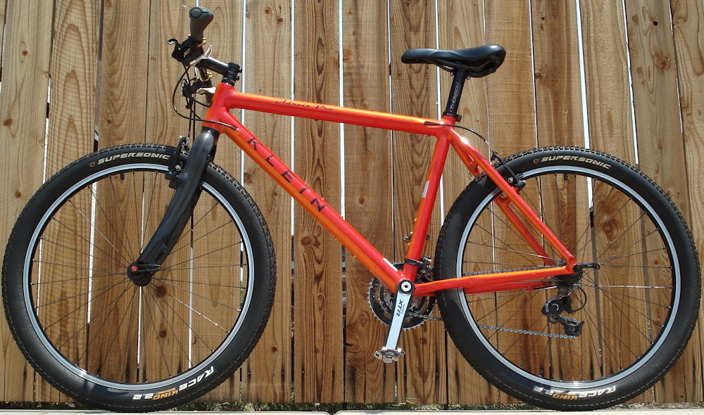 After years of wanting a Klein mountain bike, this is the first one I bought. When I bought it as a complete bike it was in rough shape, and I ended up replacing everything but the frame, headset, and stem.